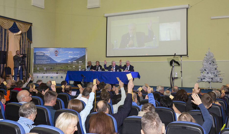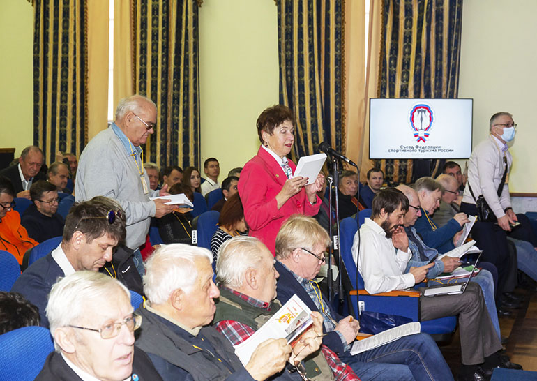Сергей Михайлович Миронов выступил с отчётным докладом. Среди прочих вопросов был поднят вопрос и о вступлении в Федерацию двух новых членов: Федерации Спортивного Туризма Донецкой и Луганской областей. Представители федераций кандидатов выступили с информационными сообщениями о своих организациях. О работе различных клубов, в том числе и не входящих в ФСТР, об идеологии и корректности в работе, о мерах по расширению работы и вовлечении туристов в орбиту Федерации рассказал вице-президент В.Н. Гоголадзе. С сообщением о проекте нового Устава выступил вице-президент С.Н. Панов.